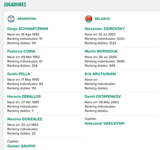 El domingo comenzará también a las 18:00 hora española, habrá acción de dobles entre Horacio Zeballos y Máximo González enfrentando a Alexander Zgirovsky y Martin Borisiouk En caso de ser necesario, se jugarán dos singles más. Por un lado, el Peque se medirá con Erik Arutiunian y Pella lo hará con Ostapenkov. Vale recordar que pueden cambiar los nombres de estos últimos dos partidos, hasta 15 minutos antes del encuentro.