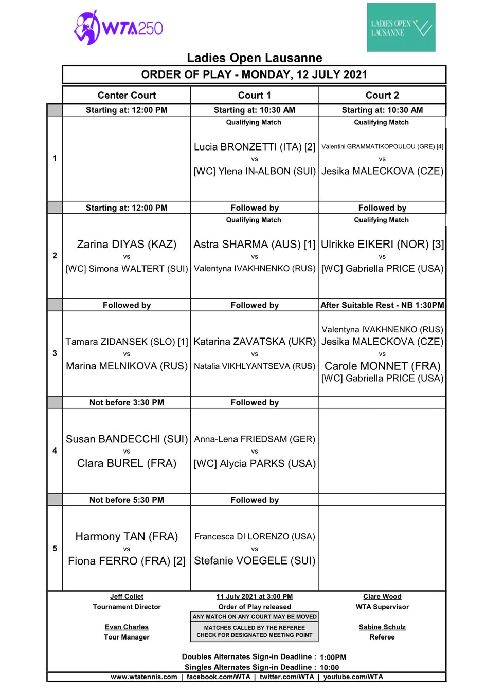 Orden de juego y cuadro Lausanne Open Tenis Fm12 jul 20211 Min. de lecturaOrden de juego y cuadro del torneo WTA 250 Ladies Lausanne Open
